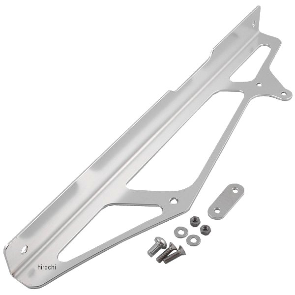 Gクラフト アルミチェーンカバー適合車種:車種:エイプ50/100用素材:A5052材使用、シルバーアルマイト仕上げ アルミで製作したチェーンカバーです。大胆に肉抜きを施し、軽量かつスタイリッシュに製作しています。表面にはシルバーアルマイトを施し、耐食性を高め長期間の使用にも色あせることはありません。