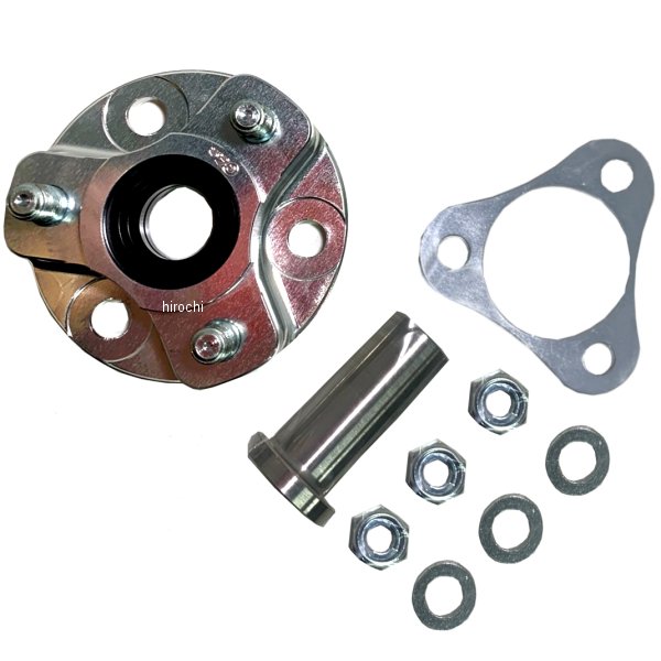 Gクラフト スプロケットスペーサーモンキーゴリラオフセット量:20MMシルバーアルマイト仕上げ素材:A2017材使用Gクラフト製スーパーワイドスイングアーム用のスプロケットスペーサーになります。スタッドボルト組込済中にボールベアリングが組み込まれており、付属の専用カラーでしっかりアクスルを受ける設計になっています。純正ハブ専用