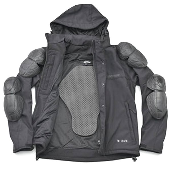 デイトナ DJ005ソフトシェルジャケットブラック Lカラー:ブラックサイズ:L防風性能とストレッチ性能に優れたソフトシェル素材を使用したシンプルなパーカーデザイン。裏地はメッシュを採用し、腕と脇下にベンチレーションを設置。長い季節を通して着用可能。脱着インナーや中綿は使用せず、着回しやすさを重視。冬場はインナーの重ね着ができるように、若干オーバーサイズ設定。フードは脱着が可能。肩・ひじ・背中はプロテクターを装備。胸はプロテクターポケットのみ。別売のSAS-TECへアップグレード