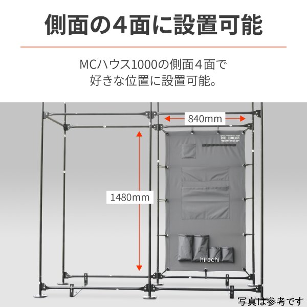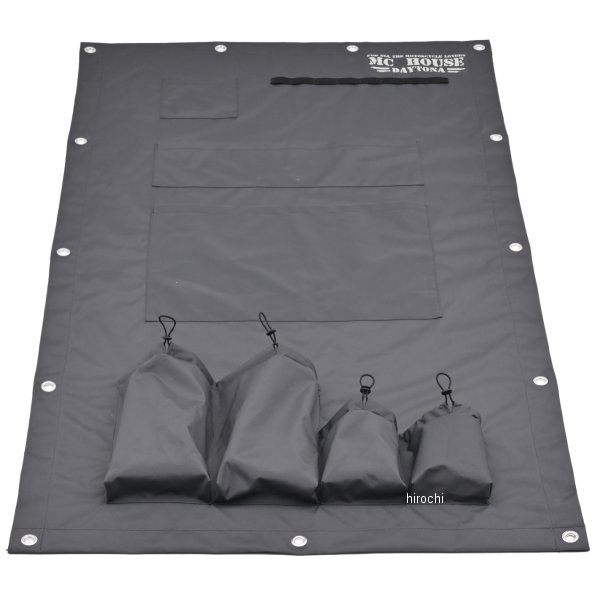 デイトナ MCハウス 壁面ポケット 1000用【仕様説明】ゴムひもで簡単に取り付けができるMCハウス用の壁面ポケット。フレームとゴムひもで連結するだけ。DIY初心者でも簡単取付。工具やパーツトレイなどが収納できるのでオートバイの整備に便利です。エアゾール用ポケットは、パーツクリーナーなどのロング缶と300ml缶がそれぞれぴったり収納できます。MCハウスと同じ素材なので、違和感無く取り付け可能。インナ