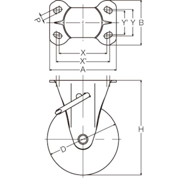 ・旋回式キャスター420J/413Jと併用できる強靭な固定式キャスターです。・使用例 : 機械の移動や重量物運搬用として多く使用されています。・車輪はラジアルボールベアリング入りです。・左レバーも製作できます。・車輪径D(mm):150・タイプ:固定式ストッパー付・許容荷重(daN):220・取付高H(mm):199・取付座A(mm):140・取付座B(mm):94・取付穴径P(mm):11・Jシリーズ 固定 SP付 ウレタンB車150mm・本体:三価クロム化成処理・本体:スチール・車輪:ウレタン・生産国 日本・JANコード 4956237443744・質量 1975g・コード:336-2044 ・品目:413JRUBB150