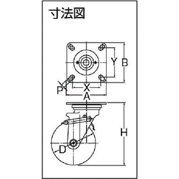 ・ラジアルボールベアリング入りで回転が軽く、荷重に対する抵抗力も非常に強靭です。・オールマイティーな中・重量用キャスターです。・車輪径D(mm):125・タイプ:自在式(ダブルストッパー付)・許容荷重(daN):200・許容荷重(kgf):204・車輪幅(mm):38・取付高H(mm):174・取付座A(mm):110・取付座B(mm):110・取付ピッチX(mm):80~90・取付ピッチY(mm):80~90・取付穴径P(mm):11・許容荷重(N):2000・プレート式・ラジアルボールベアリング入・自在式(ダブルストッパー付)・旋回部と車輪を同時にロック・金具:スチール・金具表面処理:三価クロム化成処理・車輪:スチールホイール、熱硬化性ウレタン・生産国 日本・JANコード 4956237433448・質量 2052g・コード:309-2585 ・品目:413JUBB125
