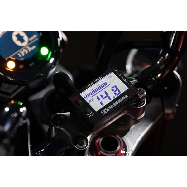 419-P03-0100 ヨシムラ PRO-GRESS3 ワイドバンドA/FメーターA/Fと電圧が表示できるメーターです。A/F表示は数値表示(表示範囲:10.0-18.0)と、直感的なバーグラフ表示(表示範囲:11.0-15.9)の2種類を同時に表示することにより優れた視認性を確保しています。・広範囲においてエンジンの燃焼状態を確実に認識できるワイドバンドを採用。・二輪車に特化して開発しているため防水・耐振動性能が確保されています。・正確な空燃比を測定するためには、センサーが一定の温度を保つ必要があります。PRO-GRESS3はエンジン始動直後からのセンサー暖気機能と、適切な動作温度(約700-800度)をキープするためのコントロール性能を持たせています。・ボタンを押すことでA/Fと電圧の表示切替が可能です。・視認性の高いホワイトバックライトを採用し、夜間走行時でもはっきりと液晶文字を確認できます。・走行中のA/Fを記録できるように、データロガー用の0-5Vアナログ出力端子が付いております。・別売りのカーボンメーターブラケットTYPE-A、TYPE-Bを使用することでハンドル上などに取り付けることができます。<ナローバンドとワイドバンドの違い>ナローバンド・・・特定の領域(空燃比14.7:1)付近ではA/Fを正確に測定できますが、その領域外になると精度が大きく低下します。ワイドバンド・・・広範囲において正確なA/Fを測定できます。【内容物】PRO-GRESS3 ワイドバンドA/Fメーター本体 ×1A/Fセンサー ×1(ワイドバンドBosch LSU4.9)メインケーブル ×1データロガーカプラー用防水キャップ(組込済み) ×1データロガー接続用端子 x2メーター固定用マジックテープ ×1結束バンド ×5