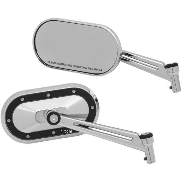 クリアキン Kuryakyn ミラー ヘビーインダストリー クローム/黒 (左右ペア)ハーレー全車種(ただし、VRSCF、ストリート は不適合)・ミラーヘッドの寸法は約6インチ(152mm)L x 3インチ(76mm)W。・ミラーステムの寸法は6インチ(152mm)L;ミラーマウントから約4インチ(102mm)上、5.5インチ(140mm)外側にミラーを配置。・取り付けハードウェアが含まれています。・ペアで販売。