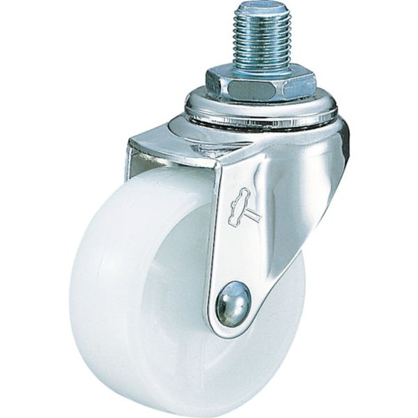 ・デザイン性と軽快さを要求される環境で幅広く使用されています。・イスなど事務用家具でよく使用されるユニファイねじ、ミリねじを採用しています。・RoHS適合品です。・スパナ一本で取り付け出来るねじ込みタイプです。・車輪径D(mm):50・タイプ:自在式・許容荷重(daN):40・許容荷重(kgf):40.8・車輪幅(mm):21・取付高H(mm):68・軸長L(mm):14・ねじT:UNF1/2・ねじ山:20・ねじ込み式・自在式・ユニファイねじタイプ・金具:スチール・金具表面処理:クロームメッキ仕上げ・車輪:ナイロン・生産国 日本・JANコード 4956237042107・質量 150g・コード:367-0848 ・品目:420A10N50
