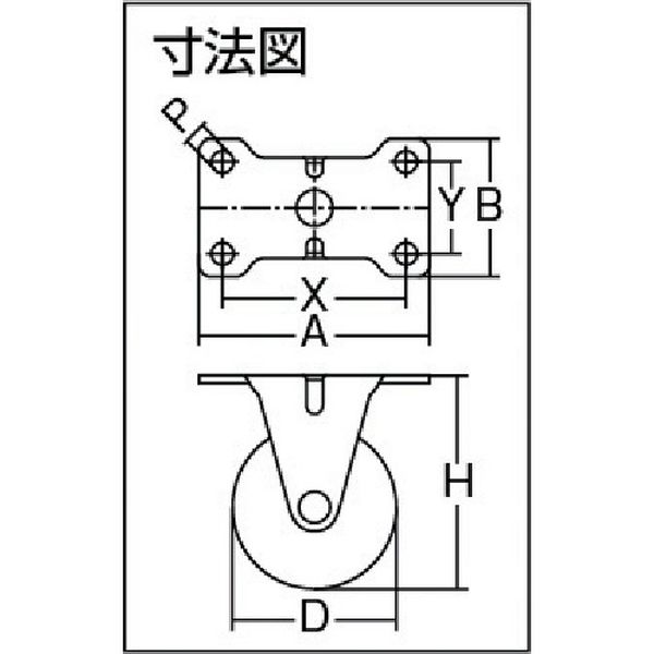 ・重量よりも容積の大きな物の運搬に最適です。・ROHS適合品です。・屋内・外を問わずオールマイティーな軽量タイプです。・車輪径D(mm):65・タイプ:固定式・許容荷重(daN):40・許容荷重(kgf):40.8・車輪幅(mm):21・取付高H(mm):82・取付座A(mm):70・取付座B(mm):42・取付ピッチX(mm):56・取付ピッチY(mm):28・取付穴径P(mm):6.5・プレート式・固定式・金具:スチール・金具表面処理:クロムメッキ仕上げ・車輪:ナイロンホイール、熱可塑性ウレタン・生産国 日本・JANコード 4956237429403・質量 149g・コード:367-1232 ・品目:420ERUR65