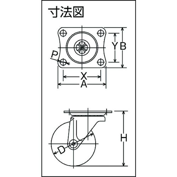 ・エラストマー材質でマーキング問題も解消する、コストパフォーマンスモデルです。・硬質車輪に無いソフトで静かな走行性能を実現しました。・RoHS適合品です。・車輪径D(mm):65・タイプ:自在式・許容荷重(daN):40・許容荷重(kgf):40.8・車輪幅(mm):27・取付高H(mm):80・取付座A(mm):70・取付座B(mm):58・取付ピッチX(mm):55・取付ピッチY(mm):42・取付穴径P(mm):8.8・取付高(mm):80・取付座(mm):70×58・取付寸法(mm):55×42・取付穴径(mm):8.8・自在式・プレート式・金具:スチール・金具表面処理:三価クロム化成処理・車輪:エラストマー・生産国 日本・JANコード 4956237446745・質量 259g・コード:114-4467 ・品目:420GL65