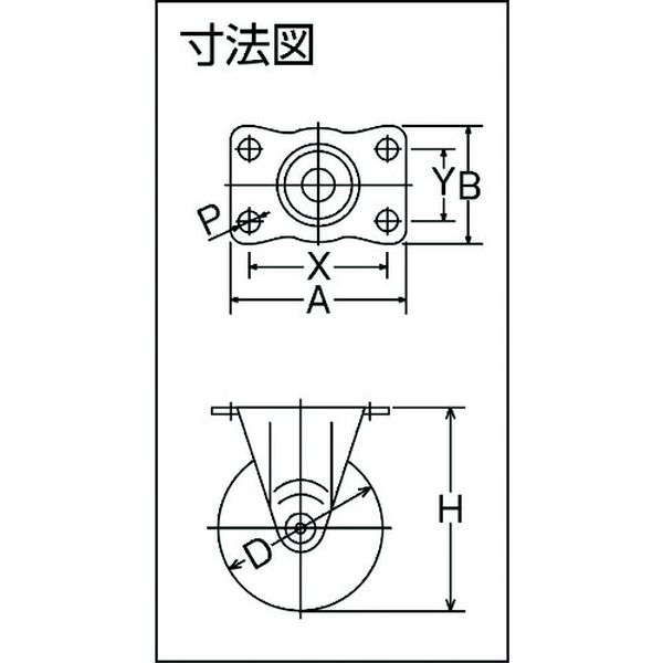 ・エラストマー材質でマーキング問題も解消する、コストパフォーマンスモデルです。・硬質車輪に無いソフトで静かな走行性能を実現しました。・RoHS適合品です。・車輪径D(mm):75・タイプ:固定式・許容荷重(daN):50・許容荷重(kgf):51・車輪幅(mm):27・取付高H(mm):90・取付座A(mm):70・取付座B(mm):47・取付ピッチX(mm):55・取付ピッチY(mm):28・取付穴径P(mm):8.8・取付高(mm):90・取付座(mm):70×47・取付寸法(mm):55×28・取付穴径(mm):8.8・固定式・プレート式・金具:スチール・金具表面処理:三価クロム化成処理・車輪:エラストマー・生産国 日本・JANコード 4956237445847・質量 212g・コード:856-9280 ・品目:420RL75