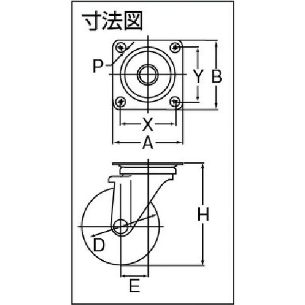 ・特殊鋼に熱処理を施すことにより、軽量化および強度アップを実現して環境に配慮しています。・持続的に軽さが求められる場所で。・車輪径D(mm):100・タイプ:自在式・許容荷重(daN):130・許容荷重(kgf):132.6・車輪幅(mm):30・取付高H(mm):132・取付座A(mm):90・取付座B(mm):90・取付ピッチX(mm):68~71・取付ピッチY(mm):68~71・取付穴径P(mm):11・自在式・プレート式・金具:特殊鋼・金具表面処理:三価クロム化成処理・車輪:ナイロンホイール、ゴム巻き車輪(ラジアルボールベアリング入)・生産国 日本・JANコード 4956237444598・質量 816g・コード:392-9639 ・品目:420YSFR100