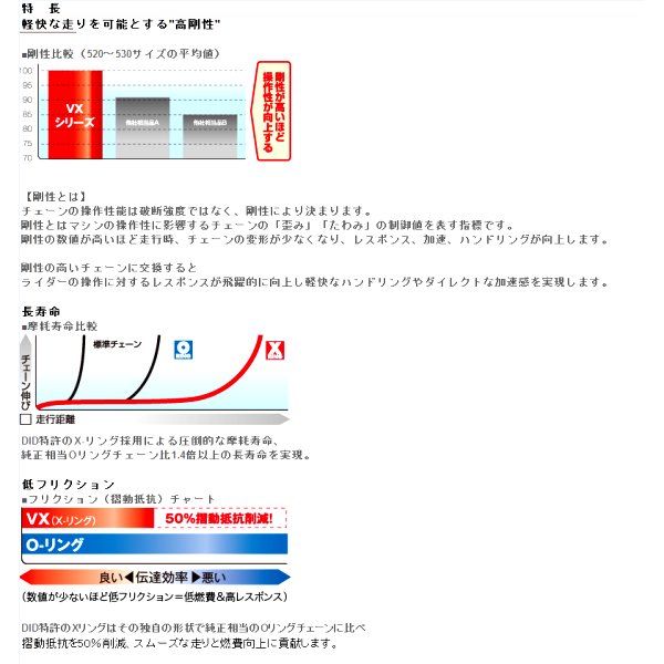 D.I.D 大同工業 チェーン 428VX シリーズチェーンサイズ:428リンク数:(108L)シールタイプ:X-Ringジョイントタイプ:ZJ(カシメ)カラー:ゴールド軽快な操作感をもたらす、ライトライディングチェーン。軽い乗り味「ライトライディング」が楽しめる、X-リング採用、高品質・高性能なこれからの定番チェーン。88年-94年 ホンダ カブ100EX84年-86年 ヤマハ YB12584年-99年 スズキ K125※パッケージは予告なく変更される場合がございます。