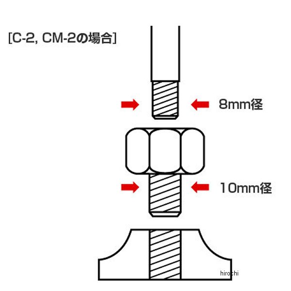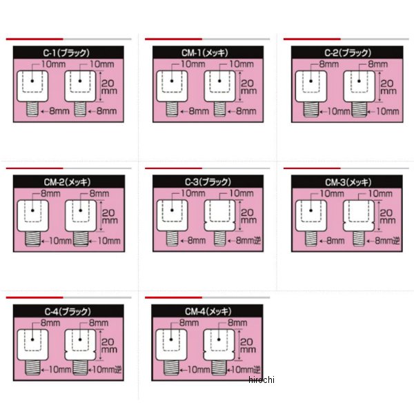 ミラーネジ8mm、取付ネジ(車輌側)正ネジ10mmへの変換アダプター適合車種:YAMAHA車以外カラー:ブラック、クロームメッキ※2個入りです