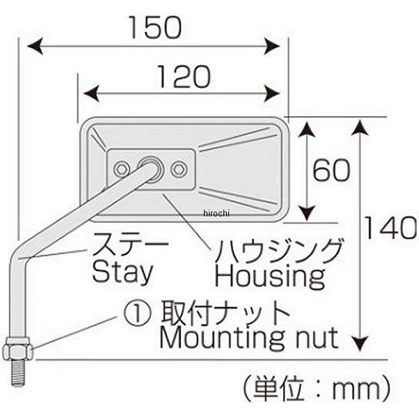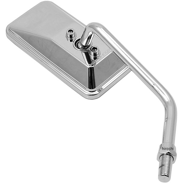 カスタムスクエアーミラーです。 汎用本体:メッキ ミラー:シルバー鏡 右用 ネジ径:10mm/正ネジ メッキがハンドル周りのドレスアップを演出します。 カスタムの定番「ブルー鏡」をラインナップ 小さくても広い後方視界を確保する「曲面鏡」を採用 ・平成19年以降の生産車は新保安基準非適合です。 ・平成18年以前の生産車は保安基準に適合しております。