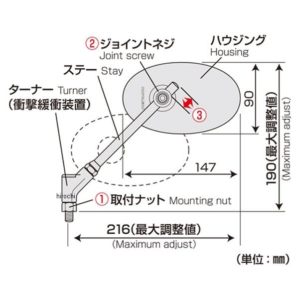 左右共通ネジ径:10mm正ネジ鏡面色:シルバー