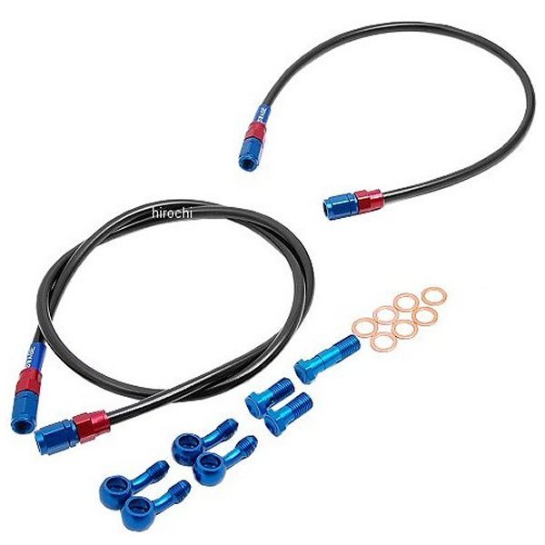 スウェッジライン SWAGE-LINE フロント ブレーキホースキット02年-03年 スズキ スカイウェイブ65003年-06年 スズキ スカイウェイブ650・ブレーキホースは10mm単位の延長指定が出来ます。※延長分が合計で500mmを超える場合は500mmごとに1100円(税込)の追加料金がかかります。・ご注文時に「マスター側ホース+100mm、キャリパー側ホース+50mm」等を備考欄に記入してください。・バンジョーネジピッチ、アダプター角度は可能です。※カシメられたバンジョーを除く・アダプタータイプ、ボルトタイプ、数量、色の変更はできません。・キャンセル・交換・返品については、承れませんので予めご了承願います。※タイプLXは適合不可ホース色:ブラックスモークコーティングホース素材:ステンレスメッシュバンジョー色:レッド/ブルーバンジョー素材:アルミフルード:無し取り廻し:ノーマルホース1:[20°バンジョー]+ストレートフィッティング-ストレートフィッティング+[20°バンジョー]/980[1020]mmホース2:[20°バンジョー]+ストレートフィッティング-ストレートフィッティング+[20°バンジョー]/540[580]mmボルトピッチ:マスター側:1.25(シングル)、キャリパー側:1.25(ダブル)/1.25(シングル)【付属品】ホース(フィッティング付き)バンジョーアダプターバンジョーボルトクラッシュワッシャーホースセパレーター(一部除く)汎用取扱説明書製品保証書