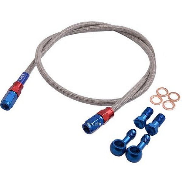スウェッジライン SWAGE-LINE フロント ブレーキホースキット79年-82年 Z400FX・ブレーキホースは10mm単位の延長指定が出来ます。※延長分が合計で500mmを超える場合は500mmごとに1100円(税込)の追加料金がかかります。・ご注文時に「マスター側ホース+100mm、キャリパー側ホース+50mm」等を備考欄に記入してください。・バンジョーネジピッチ、アダプター角度は可能です。※カシメられたバンジョーを除く・アダプタータイプ、ボルトタイプ、数量、色の変更はできません。・キャンセル・交換・返品については、承れませんので予めご了承願います。ホース色:クリアコーティングホース素材:ステンレスメッシュバンジョー色:レッド/ブルーバンジョー素材:アルミフルード:無し取り廻し:ノーマルホース1:[20°バンジョー]+ストレートフィッティング-ストレートフィッティング+[20°バンジョー]/940[980]mmボルトピッチ:マスター側:1.25(シングル)、キャリパー側:1.25(シングル)【付属品】ホース(フィッティング付き)バンジョーアダプターバンジョーボルトクラッシュワッシャーホースセパレーター(一部除く)汎用取扱説明書製品保証書