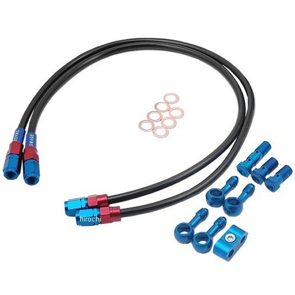 スウェッジライン SWAGE-LINE フロント ブレーキホースキット89年-90年 カワサキ ZXR250・ブレーキホースは10mm単位の延長指定が出来ます。※延長分が合計で500mmを超える場合は500mmごとに1100円(税込)の追加料金がかかります。・ご注文時に「マスター側ホース+100mm、キャリパー側ホース+50mm」等を備考欄に記入してください。・バンジョーネジピッチ、アダプター角度は可能です。※カシメられたバンジョーを除く・アダプタータイプ、ボルトタイプ、数量、色の変更はできません。・キャンセル・交換・返品については、承れませんので予めご了承願います。ホース色:ブラックスモークコーティングホース素材:ステンレスメッシュバンジョー色:レッド/ブルーバンジョー素材:アルミフルード:無し取り廻し:ノーマルホース1:[ストレートバンジョー]+ストレートフィッティング-ストレートフィッティング+[20°バンジョー]/600[640]mmホース2:[ストレートバンジョー]+ストレートフィッティング-ストレートフィッティング+[20°バンジョー]/630[670]mmボルトピッチ:マスター側:1.25(ダブル)、キャリパー側:1.25(シングル)x2【付属品】ホース(フィッティング付き)バンジョーアダプターバンジョーボルトクラッシュワッシャーホースセパレーター(一部除く)汎用取扱説明書製品保証書