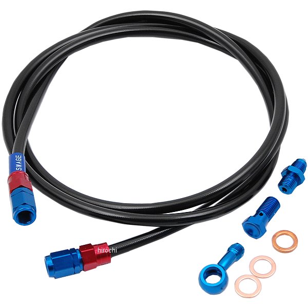 スウェッジライン SWAGE-LINE リア ブレーキホースキット87年 ホンダ VFR750R・ブレーキホースは10mm単位の延長指定が出来ます。※延長分が合計で500mmを超える場合は500mmごとに1100円(税込)の追加料金がかかります。・ご注文時に「マスター側ホース+100mm、キャリパー側ホース+50mm」等を備考欄に記入してください。・バンジョーネジピッチ、アダプター角度は可能です。※カシメられたバンジョーを除く・アダプタータイプ、ボルトタイプ、数量、色の変更はできません。・キャンセル・交換・返品については、承れませんので予めご了承願います。車両型式:RC30ホース色:ブラックスモークコーティングホース素材:ステンレスメッシュバンジョー色:レッド/ブルーバンジョー素材:アルミフルード:無し取り廻し:ノーマルホース1:[20°バンジョー]+ストレートフィッティング-ストレートフィッティング+[キャリパーアダプター]/1580[1600]mmボルトピッチ:マスター側:1.25(シングル)、キャリパー側:1.25(キャリパーアダプター)キャリパー側はキャリパーアダプターです。【付属品】ホース(フィッティング付き)バンジョーアダプターバンジョーボルトクラッシュワッシャー汎用取扱説明書製品保証書