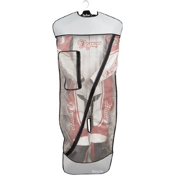 デグナー DEGNER スーツシールドカラー:グレー 素材:ポリエステルサイズ:縦148cm×横65cm内側には通気性の良いメッシュ素材を使用。収納時のムレを軽減し、衛生的な環境を維持。ベルトをハンガーに掛けて2つ折り。穴からハンガーの吊り下げ部分を出して3つ折りに。ライディングギアを収納できるポケット付き。開口部が大きくなるようファスナーを斜めに配置。【注意点】経年変化やご使用による製品の劣化・損耗は避けられません。耐久性には十分考慮しておりますが、過度な負担をかけたり使用方法が適切でない場合破損する恐れがございます。商品の仕様等予告なく変更する場合がございます。