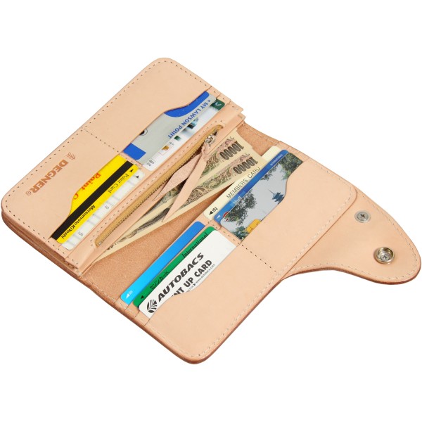 デグナー DEGNER レザーウォレットカラー:タン 素材:牛革サイズ:縦19.3cm×横9.5cm×幅2.5cm【仕様】お札入れ×1小銭入れ×1カードポケット×10フリーポケット×3※コンチョはシルバーではありません。【注意点】経年変化やご使用による製品の劣化・損耗は避けられません。製作時期によっても革の風合いに若干の差異が生じることが御座いますので予めご了承くださいませ。同じ製品であってもそのシワやヒビの入り方にはそれぞれ個体差があり、またその革固有のキズ・色合いの濃淡なども個性がございます。製作時期によっても革の風合いに若干の差異が生じることがございます。予めご了承ください。経年変化やご使用による製品の劣化・損耗は避けられません。耐久性には十分考慮しておりますが、過度な負担をかけたり 使用方法が適切でない場合破損する恐れがございます。雨・汗などでの湿り、摩擦などからの刺激で色移りすることがございますので、ご注意ください。商品の仕様等予告なく変更する場合がございます。