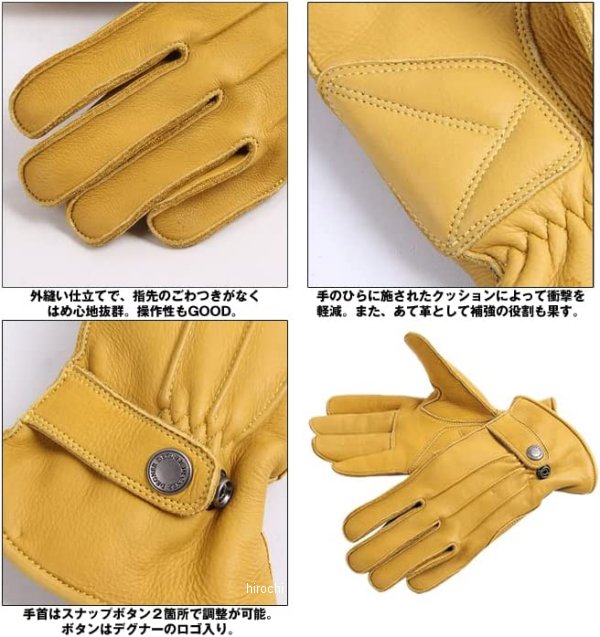 デグナー DEGNER レザーグローブカラー:ブラウン サイズ:2XLサイズ素材:牛革外縫い仕立てで指先のごわつきがなくはめ心地抜群。柔らかく程よい弾力のある牛革を使用。手首はスナップボタン2箇所で調整が可能。手のひらに施されたクッションによって衝撃を軽減。あて側として補強の役割も。生産時期によりボタン仕様が異なります。【注意点】経年変化やご使用による製品の劣化・損耗は避けられません。耐久性には十分考慮しておりますが、過度な負担をかけたり使用方法が適切でない場合破損する恐れがございます。同じ製品であってもそのシワやヒビの入り方にはそれぞれ個体差があり、またその革固有のキズ・色合いの濃淡など個性がございます。製作時期によっても革の風合いに若干の差異が生じることが御座いますので予めご了承くださいませ。商品の仕様等予告なく変更する場合がございます。