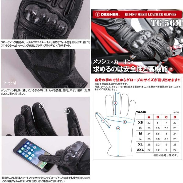 デグナー DEGNER ライディング メッシュレザーグローブカラー:ブラック サイズ:2XLサイズ素材:牛革【注意点】お使いの保護フィルムと相性が悪く、スマホタッチが反応しない場合がございます。お届け後、必ず動作確認をしてからのご使用をよろしくお願いいたします。耐久性には十分考慮しておりますが、過度な負担をかけたり使用方法が適切でない場合破損する恐れがございます。経年変化やご使用による製品の劣化・損耗は避けられません。皮革の染色には特に注意しておりますが、現在の染色技術では完全に色落ちしない染色は完成しておりません。汗・水・摩擦・日光等で色落ち・色移り・変色する場合がございます。予めご了承ください。商品の仕様等予告なく変更する場合がございます。