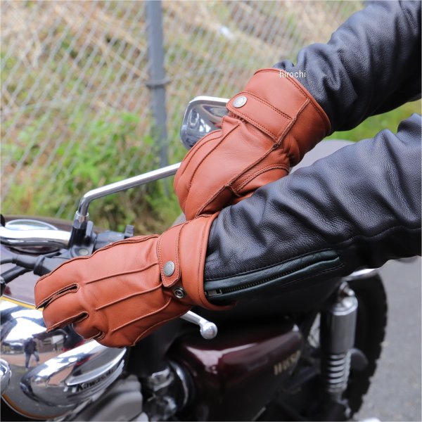 デグナー DEGNER レザー ウィンターグローブカラー:ブラウン サイズ:Mサイズ素材:牛革、透湿防水フィルムボディにはハイポーラを内蔵。防水透湿性に優れ、ムレにくく快適。内側はフリース生地なのでやわらかく暖かい着け心地。手首のリブニットで走行風の侵入を防止。暖かさをしっかり保ちます。手のひら側にはクッション性を持たせたあて革を施し、補強。振動から手を保護し、快適さをサポート。親指、人差し指、中指にタッチスクリーン対応素材を採用。グローブを外すことなくスマホなどの操作が可能。2箇所のスナップボタンで、手首に合わせてサイズ調整が可能。【注意点】お使いの保護フィルムと相性が悪く、スマホタッチが反応しない場合がございます。経年変化やご使用による製品の劣化・損耗は避けられません。耐久性には十分考慮しておりますが、過度な負担をかけたり使用方法が適切でない場合破損する恐れがございます。同じ製品であってもそのシワやヒビの入り方にはそれぞれ個体差があり、またその革固有のキズ・色合いの濃淡など一着一着に個性がございます。製作時期によっても革の風合いに若干の差異が生じることが御座いますので予めご了承くださいませ。商品の仕様等予告なく変更する場合がございます。