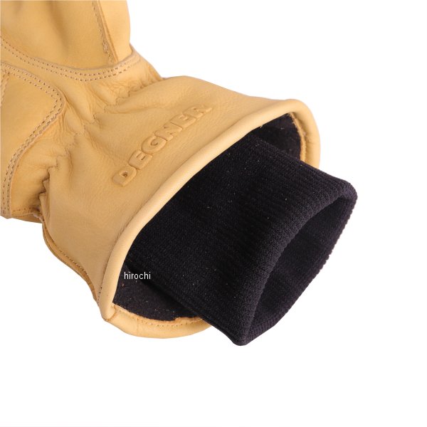 デグナー DEGNER レザー ウィンターグローブカラー:タン サイズ:Sサイズ素材:牛革、透湿防水フィルムボディにはハイポーラを内蔵。防水透湿性に優れ、ムレにくく快適。内側はフリース生地なのでやわらかく暖かい着け心地。手首のリブニットで走行風の侵入を防止。暖かさをしっかり保ちます。手のひら側にはクッション性を持たせたあて革を施し、補強。振動から手を保護し、快適さをサポート。親指、人差し指、中指にタッチスクリーン対応素材を採用。グローブを外すことなくスマホなどの操作が可能。2箇所のスナップボタンで、手首に合わせてサイズ調整が可能。【注意点】お使いの保護フィルムと相性が悪く、スマホタッチが反応しない場合がございます。経年変化やご使用による製品の劣化・損耗は避けられません。耐久性には十分考慮しておりますが、過度な負担をかけたり使用方法が適切でない場合破損する恐れがございます。同じ製品であってもそのシワやヒビの入り方にはそれぞれ個体差があり、またその革固有のキズ・色合いの濃淡など一着一着に個性がございます。製作時期によっても革の風合いに若干の差異が生じることが御座いますので予めご了承くださいませ。商品の仕様等予告なく変更する場合がございます。