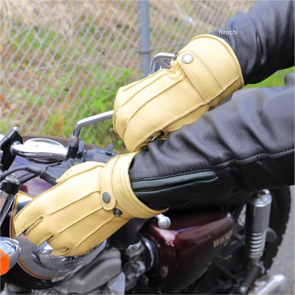 デグナー DEGNER レザー ウィンターグローブカラー:タン サイズ:XLサイズ素材:牛革、透湿防水フィルムボディにはハイポーラを内蔵。防水透湿性に優れ、ムレにくく快適。内側はフリース生地なのでやわらかく暖かい着け心地。手首のリブニットで走行風の侵入を防止。暖かさをしっかり保ちます。手のひら側にはクッション性を持たせたあて革を施し、補強。振動から手を保護し、快適さをサポート。親指、人差し指、中指にタッチスクリーン対応素材を採用。グローブを外すことなくスマホなどの操作が可能。2箇所のスナップボタンで、手首に合わせてサイズ調整が可能。【注意点】お使いの保護フィルムと相性が悪く、スマホタッチが反応しない場合がございます。経年変化やご使用による製品の劣化・損耗は避けられません。耐久性には十分考慮しておりますが、過度な負担をかけたり使用方法が適切でない場合破損する恐れがございます。同じ製品であってもそのシワやヒビの入り方にはそれぞれ個体差があり、またその革固有のキズ・色合いの濃淡など一着一着に個性がございます。製作時期によっても革の風合いに若干の差異が生じることが御座いますので予めご了承くださいませ。商品の仕様等予告なく変更する場合がございます。