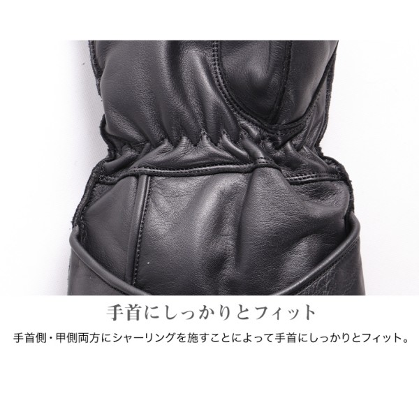 デグナー DEGNER ガントレットレザーグローブカラー:ブラック サイズ:Mサイズ素材:牛革ボディにはハイポーラを内蔵!防水透湿性に優れ、ムレにくく快適。内側はフリース生地なのでやわらかく暖かい着け心地。袖口をしっかりとカバー。走行風の侵入を阻止するガントレットタイプ。履き口が大きく開くので袖を覆いやすく着脱も簡単。手首口を絞れるのでスマートなシルエットに。面ファスナーなので力を入れずに脱着が可能。手首側・甲側両方にシャーリングを施すことによって手首にしっかりとフィット。縫い目が指に当たらず、操作性を向上する外縫い仕様。【注意点】商品の仕様等予告なく変更する場合がございます。