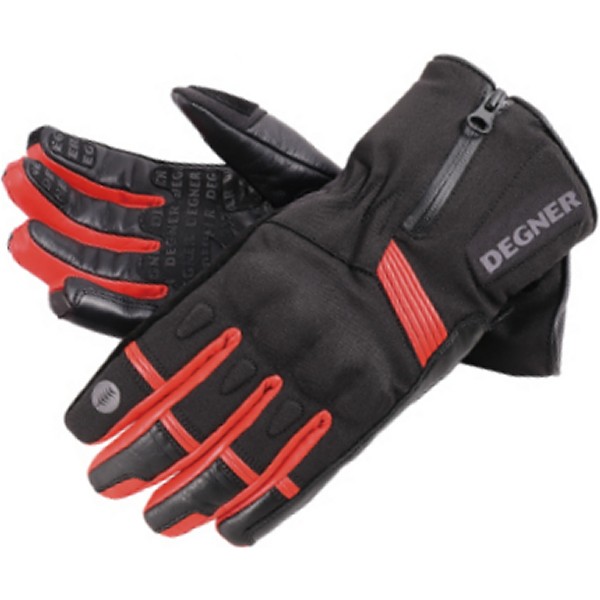 デグナー DEGNER ガントレットテキスタイルグローブカラー:ブラック/レッド サイズ:Sサイズ素材:ポリエステル、牛革、ハイポーラ内側はフリースで暖かく、やわらかな着け心地。透湿防水フィルムハイポーラを使用し、暖かいのにムレにくく快適。手の甲と指の付け根にプロテクターを内蔵。2箇所の面ファスナーで手首周りを調整できる。上側には引手にもなるベルトガードを取り付け。甲側のファスナーで広がり、袖口を覆いやすい。指と甲にシャーリングを施し、関節を曲げやすく運転時のストレスを軽減。手のひら側には広範囲にわたって、デグナーロゴをかたどった滑り止めを配置。人差し指にリフレクターを配置。夜間の視認性を高め安全性をアップ。【注意点】経年変化やご使用による製品の劣化・損耗は避けられません。耐久性には十分考慮しておりますが、過度な負担をかけたり使用方法が適切でない場合破損する恐れがございます。同じ製品であってもそのシワやヒビの入り方にはそれぞれ個体差があり、またその革固有のキズ・色合いの濃淡など一着一着に個性がございます。製作時期によっても革の風合いに若干の差異が生じることが御座いますので予めご了承くださいませ。商品の仕様等予告なく変更する場合がございます。