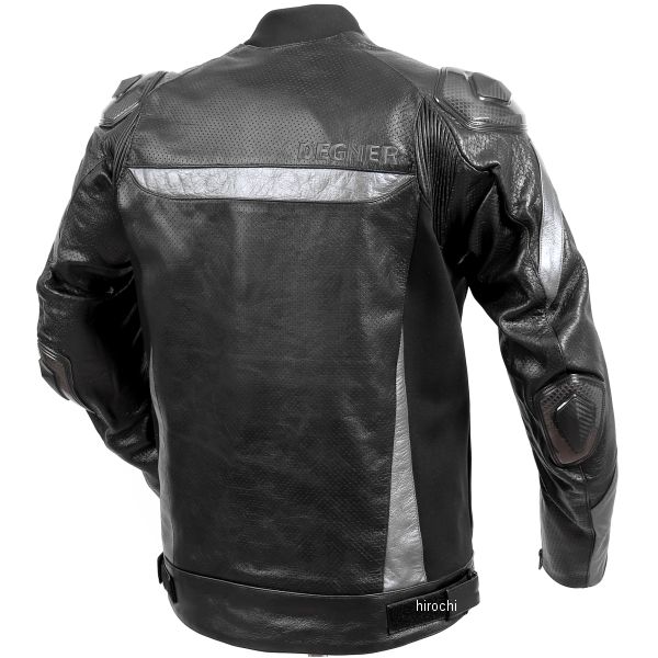デグナー DEGNER メッシュレザーレーシングジャケットカラー:ブラック/ガンメタル サイズ:Lサイズ素材:牛革 (メッシュ)暑い季節も快適に走行できる全面メッシュ。裏地には肌離れと通気性が良く軽い着心地のメッシュを採用。背中内側に備えたファスナーでパンツとジャケットを接続可能。ファスナーで繋げばすり上がりを防ぎ、前傾姿勢をとっても背中が見えない。腕内側、脇腹に伸縮性のあるジャージ素材を使用することで腕のフィット感を向上し、曲げたときの負担を軽減。肩の後ろのシャーリングと脇のジャージ素材は動きやすく腕の疲労感を軽減。ウエストはベルトで調整可能肩と肘には樹脂製のアウタープロテクターを装備肩、ひじ、背中、胸には取外し可能なCE規格レベル2対応のプロテクター。【注意点】メッシュレザーは素材の特質上、インナーに革の切り粉が付着いたします。ご着用とともに減少していきますが、ご着用当初は革の粉が付いても気にならない同系色のインナーの着用をおすすめします。同じ製品であってもそのシワやヒビの入り方にはそれぞれ個体差があり、またその革固有のキズ・色合いの濃淡なども個性がございます。製作時期によっても革の風合いに若干の差異が生じることがございます。予めご了承ください。経年変化やご使用による製品の劣化・損耗は避けられません。耐久性には十分考慮しておりますが、過度な負担をかけたり 使用方法が適切でない場合破損する恐れがございます。薄い色の衣服と合わせて着用された時、雨・汗などでの湿り、摩擦などからの刺激で色移りすることがございますので、ご注意ください。商品の仕様等予告なく変更する場合がございます。【お手入れ方法】汗や雨等でジャケットが濡れてしまった後は、風通しのよい日陰で乾燥させ、レザーオイルで保湿してください。レザーオイルの塗りすぎは革が弱くなってしまい、カビ等の原因となりやすい為、塗りすぎないよう、薄く塗布してください。長期の保管前には、革製品のクリーニング等もオススメです。