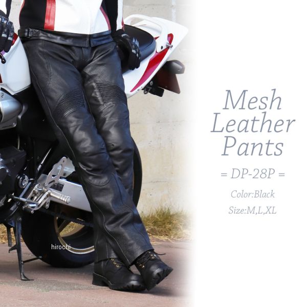 デグナー DEGNER メッシュレザーライディングパンツカラー:ブラック サイズ:XLサイズ素材:牛革(メッシュレザー)パンチングメッシュで通気性が良く走行を快適に。しなやかな牛革で柔らかな履き心地。膝上にシャーリングを設けることで動きを妨げない。ヒザには着脱可能なプロテクターを備える。膝部分の革にはパンチング加工をしないことで耐久性アップ。ヒザだけでなく腰にもプロテクターを標準で装備。もちろん着脱可能。膝を曲げていることでムレやすい膝裏は革にパンチング加工を施すことで通気性を確保。足の内側はパンチングメッシュ加工をしないことでエンジンやマフラーの熱を予防。【注意点】経年変化やご使用による製品の劣化・損耗は避けられません。革は天然素材ですので、製品個体によって色むらなど若干の差がございます事をご了承ください。同じ製品であってもそのシワやヒビの入り方にはそれぞれ個体差があり、またその革固有のキズ・色合いの濃淡など一着一着に個性がございます。製作時期によっても革の風合いに若干の差異が生じることがございますのでご了承ください。商品の仕様等予告なく変更する場合がございます。