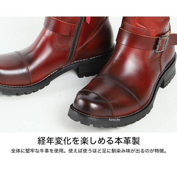 デグナー DEGNER シフトガード付レザーZIPエンジニアブーツカラー:ブラウン サイズ:27.5cm素材:牛革左右に施されたシフトガードでブーツ本体をダメージからしっかり保護。サイドのジッパーで気軽に脱ぎ履き。かかと約4.5cm、つま先約1.5cmと高めに設計することで、足つきを良くし快適なライディングへ。全体に堅牢な牛革を使用。使えば使うほど足に馴染み味が出るのが特徴。【注意点】本製品は仕上げに濃い色のレザーオイルで濃淡を付けております。ご使用いただく中で、表面の擦れや傷によるオイルの色落ちは避けられません。同じ製品であってもそのシワやヒビの入り方にはそれぞれ個体差があり、またその革固有のキズ・色合いの濃淡など個性がございます。製作時期によっても革の風合いに若干の差異が生じることが御座います。キズが目立って来たなと感じられた際は、お手持ちのレザーオイルを塗布し、メンテナンスを行うことで目立ちにくくなります。履き始めは革の硬さによって多少窮屈に感じますが、履いているうちに革が伸び足に馴染んできます。ご安心ください。耐久性には十分考慮しておりますが、過度な負担をかけたり、使用方法が適切でない場合破損する恐れがございます。製品本体及びその付属物が車体と干渉することにより、車体に傷がつく恐れがあります。熱くなったエンジン・マフラー等に製品が接触したり熱にさらされ続ける事で、溶けたり、穴が開いたり、硬化する恐れがありますので、十分注意してお使いください。商品の仕様等予告なく変更する場合がございます。