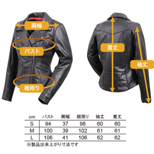 デグナー DEGNER ダブルライダースレディースレザージャケットカラー:ブラック サイズ:Sサイズ素材:牛革丈夫で堅牢な牛革を使用。背中、肩、肘に取り外し可能なプロテクターを標準装備。袖口はファスナーでスムーズに開閉可能。アクションプリーツを配置することで腕の曲げ伸ばしをサポート。【注意点】同じ製品であってもそのシワやヒビの入り方にはそれぞれ個体差があり、またその革固有のキズ・色合いの濃淡なども個性がございます。製作時期によっても革の風合いに若干の差異が生じることがございます。予めご了承ください。経年変化やご使用による製品の劣化・損耗は避けられません。耐久性には十分考慮しておりますが、過度な負担をかけたり使用方法が適切でない場合破損する恐れがございます。薄い色の衣服と合わせて着用された時、雨・汗などでの湿り、摩擦などからの刺激で色移りすることがございますので、ご注意ください。商品の仕様等予告なく変更する場合がございます。【お手入れ方法】汗や雨等でジャケットが濡れてしまった後は、風通しのよい日陰で乾燥させ、レザーオイルで保湿してください。レザーオイルの塗りすぎは革が弱くなってしまい、カビ等の原因となりやすい為、塗りすぎないよう、薄く塗布してください。長期の保管前には、革製品のクリーニング等もオススメです。