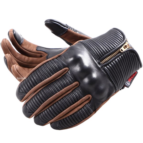 デグナー DEGNER レザーグローブ シャーリング プロテクターカラー:ブラック/ブラウン サイズ:Mサイズ素材:牛革手の甲全体に配したシャーリングが指の動きをサポート。カフスの長さを手首までのショート丈にしたことで腕時計に干渉しにくい。革張りで見た目を損なわないナックルプロテクターを装備。摩耗しやすい手のひらは革やプロテクターで補強。グローブの着脱がしやすいロック式ファスナー。二土佐市指と親指にタッチスクリーン対応素材を使用。【注意点】お使いの保護フィルムと相性が悪く、スマホタッチが反応しない場合がございます。同じ製品であってもそのシワやヒビの入り方にはそれぞれ個体差があり、またその革固有のキズ・色合いの濃淡なども個性がございます。製作時期によっても革の風合いに若干の差異が生じることがございます。予めご了承ください。経年変化やご使用による製品の劣化・損耗は避けられません。耐久性には十分考慮しておりますが、過度な負担をかけたり使用方法が適切でない場合破損する恐れがございます。薄い色の衣服と合わせて着用された時、雨・汗などでの湿り、摩擦などからの刺激で色移りすることがございますので、ご注意ください。商品の仕様等予告なく変更する場合がございます。【お手入れ方法】汗や雨等で濡れてしまった後は、風通しのよい日陰で乾燥させ、レザーオイルで保湿してください。レザーオイルの塗りすぎは革が弱くなってしまい、カビ等の原因となりやすい為、塗りすぎないよう、薄く塗布してください。長期の保管前には、革製品のクリーニング等もオススメです。