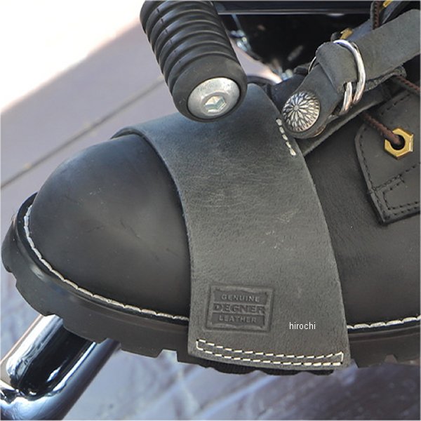 デグナー DEGNER シフトガードカラー:ブラック 素材:牛革サイズ:縦6cm ×横13cm ※ブーツ外周30cm以上に対応本革でブーツやシューズを傷から守る。ズレ防止のストッパー付き。デグナーオリジナルのラバーグリップを採用。滑りにくく安定し耐久性向上。【注意点】経年変化やご使用による製品の劣化・損耗は避けられません。ゴムが伸びてきたら、交換時期とお考え下さい。耐久性には十分考慮しておりますが、過度な負担をかけたり使用方法が適切でない場合破損する恐れがございます。同じ製品であってもそのシワやヒビの入り方にはそれぞれ個体差があり、またその革固有のキズ・色合いの濃淡など個性がございます。製作時期によっても革の風合いに若干の差異が生じることが御座いますので予めご了承くださいませ。商品の仕様等予告なく変更する場合がございます。