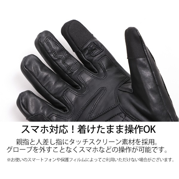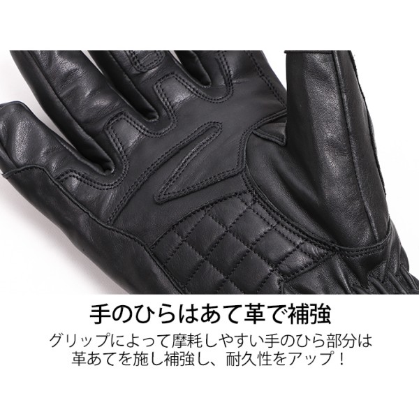 デグナー DEGNER ウィンター レザーグローブカラー:ブラック/ブラック サイズ:Mサイズ素材:牛革/透湿防水フィルム/保温断熱中綿手首がファスナー式でジャケットの袖口をしっかりと覆うことで風の侵入を防ぎます。親指と人差指にタッチスクリーン対応素材を採用。手のひら部分は革あてを施し耐久性アップ。ナックルプロテクターは柔らかくフロート構造でグリップ時の突っ張り感を軽減します。【注意点】お使いの保護フィルムと相性が悪く、スマホタッチが反応しない場合がございます。経年変化やご使用による製品の劣化・損耗は避けられません。耐久性には十分考慮しておりますが、過度な負担をかけたり使用方法が適切でない場合破損する恐れがございます。同じ製品であってもそのシワやヒビの入り方にはそれぞれ個体差があり、またその革固有のキズ・色合いの濃淡など個性がございます。製作時期によっても革の風合いに若干の差異が生じることが御座いますので予めご了承くださいませ。商品の仕様等予告なく変更する場合がございます。
