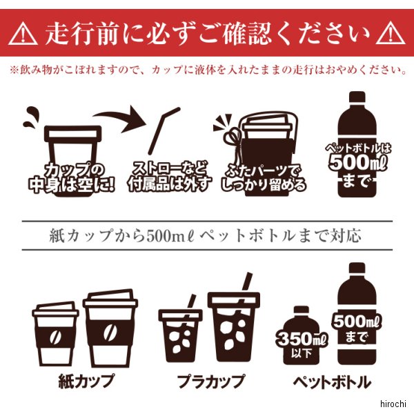 デグナー DEGNER カップ&ドリンクホルダーカラー:ブラック 素材:牛革(天然タンニンなめし)付属品:結束バンド 2本最大500mlのペットボトル対応【注意点】経年変化やご使用による製品の劣化・損耗は避けられません。耐久性には十分考慮しておりますが、過度な負担をかけたり使用方法が適切でない場合破損する恐れがございます。同じ製品であってもそのシワやヒビの入り方にはそれぞれ個体差があり、またその革固有のキズ・色合いの濃淡なども個性がございます。製作時期によっても革の風合いに若干の差異が生じることが御座いますので、予めご了承くださいませ。商品の仕様等予告なく変更する場合がございます。