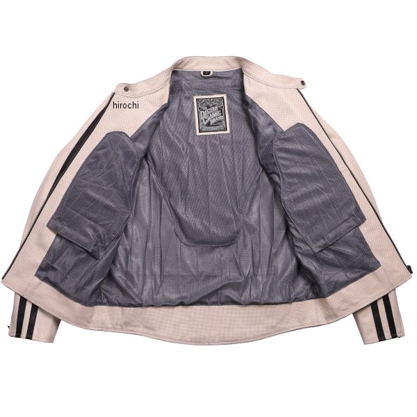 デグナー DEGNER メッシュレザージャケットカラー:アイボリー サイズ:Lサイズ素材:牛革 (メッシュ)本革のメッシュレザーを使用した涼しくて快適なシングルライダースジャケット。肩・ヒジ・胸・背中に着脱可能なプロテクターを標準装備。袖口はファスナー仕様でグローブに合わせて調節可能。裾のベルトでザイズ調節できバタつき防止に。アクションプリーツを配置することで肩回りが動かしやすくなりライディング時の負荷を軽減。【注意点】メッシュレザーは素材の特質上、インナーに革の切り粉が付着いたします。ご着用とともに減少していきますが、ご着用当初は革の粉が付いても気にならない同系色のインナーの着用をおすすめします。同じ製品であってもそのシワやヒビの入り方にはそれぞれ個体差があり、またその革固有のキズ・色合いの濃淡なども個性がございます。製作時期によっても革の風合いに若干の差異が生じることがございます。予めご了承ください。経年変化やご使用による製品の劣化・損耗は避けられません。耐久性には十分考慮しておりますが、過度な負担をかけたり 使用方法が適切でない場合破損する恐れがございます。薄い色の衣服と合わせて着用された時、雨・汗などでの湿り、摩擦などからの刺激で色移りすることがございますので、ご注意ください。商品の仕様等予告なく変更する場合がございます。【お手入れ方法】汗や雨等でジャケットが濡れてしまった後は、風通しのよい日陰で乾燥させ、レザーオイルで保湿してください。レザーオイルの塗りすぎは革が弱くなってしまい、カビ等の原因となりやすい為、塗りすぎないよう、薄く塗布してください。長期の保管前には、革製品のクリーニング等もオススメです。