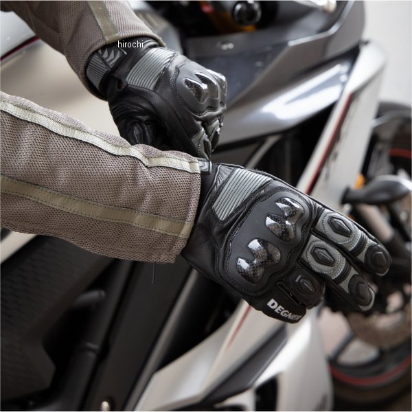 デグナー DEGNER レザースポーツグローブカラー:ブラック/ホワイトグレー サイズ:Mサイズ素材:やぎ革/アマラ(合成皮革)/ナイロン/ポリエステル/ネオプレーン親指と人差指にタッチスクリーン対応素材を採用。手の甲にはプロテクターを装備。親指、人差し指、中指にシャーリングを施し握りやすさアップ。指先を外縫い仕立てにすることで指先のごわつきをなくした。手首部分は面ファスナー式で着脱やサイズ調整がカンタン。手のひらの部分には衝撃吸収パッドを設置。手のひらはあて革で補強。小指部分にリフレクターロゴ。【注意点】お使いの保護フィルムと相性が悪く、スマホタッチが反応しない場合がございます。お届け後、必ず動作確認をしてからのご使用をよろしくお願いいたします。同じ製品であってもそのシワやヒビの入り方にはそれぞれ個体差があり、またその革固有のキズ・色合いの濃淡なども個性がございます。製作時期によっても革の風合いに若干の差異が生じることがございます。予めご了承ください。経年変化やご使用による製品の劣化・損耗は避けられません。耐久性には十分考慮しておりますが、過度な負担をかけたり 使用方法が適切でない場合破損する恐れがございます。薄い色の衣服と合わせて着用された時、雨・汗などでの湿り、摩擦などからの刺激で色移りすることがございますので、ご注意ください。商品の仕様等予告なく変更する場合がございます。【お手入れ方法】汗や雨等で濡れてしまった後は、風通しのよい日陰で乾燥させ、レザーオイルで保湿してください。レザーオイルの塗りすぎは革が弱くなってしまい、カビ等の原因となりやすい為、塗りすぎないよう、薄く塗布してください。長期の保管前には、革製品のクリーニング等もオススメです。