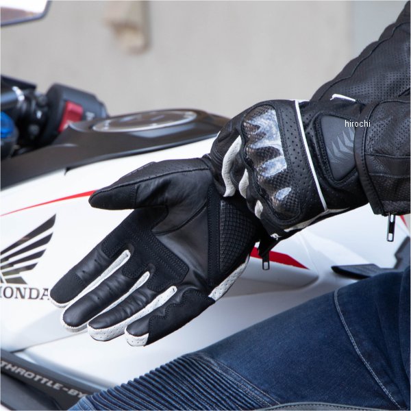 デグナー DEGNER メッシュプロテクターショートグローブカラー:ホワイト サイズ:Lサイズ素材:牛革親指と人差指にタッチスクリーン対応素材を採用。手の甲にはプロテクターを装備。フローティング構造のナックルプロテクターはより自然なフィット感で操作性を向上。関節部分のシャーリングで指の曲げ伸ばしをサポート。パンチングメッシュを施した革を使用することでムレを軽減。手首部分は面ファスナー式で着脱やサイズ調整がカンタン。手のひらはあて革で補強。【注意点】お使いの保護フィルムと相性が悪く、スマホタッチが反応しない場合がございます。お届け後、必ず動作確認をしてからのご使用をよろしくお願いいたします。同じ製品であってもそのシワやヒビの入り方にはそれぞれ個体差があり、またその革固有のキズ・色合いの濃淡なども個性がございます。製作時期によっても革の風合いに若干の差異が生じることがございます。予めご了承ください。経年変化やご使用による製品の劣化・損耗は避けられません。耐久性には十分考慮しておりますが、過度な負担をかけたり使用方法が適切でない場合破損する恐れがございます。薄い色の衣服と合わせて着用された時、雨・汗などでの湿り、摩擦などからの刺激で色移りすることがございますので、ご注意ください。商品の仕様等予告なく変更する場合がございます。【お手入れ方法】汗や雨等で濡れてしまった後は、風通しのよい日陰で乾燥させ、レザーオイルで保湿してください。レザーオイルの塗りすぎは革が弱くなってしまい、カビ等の原因となりやすい為、塗りすぎないよう、薄く塗布してください。長期の保管前には、革製品のクリーニング等もオススメです。