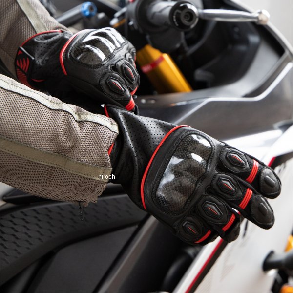 デグナー DEGNER メッシュスポーツグローブカラー:ブラック/レッド サイズ:Lサイズ素材:やぎ革/アマラ/ポリエステル親指と人差し指にタッチスクリーン対応素材を採用。手の甲にはプロテクターを装備。フローティング構造のナックルプロテクターはより自然なフィット感で操作性を向上。関節部分のシャーリングで指の曲げ伸ばしをサポート。パンチングメッシュを施した革を使用することでムレを軽減。手首部分は面ファスナー式で着脱やサイズ調整がカンタン。【注意点】お使いの保護フィルムと相性が悪く、スマホタッチが反応しない場合がございます。お届け後、必ず動作確認をしてからのご使用をよろしくお願いいたします。経年変化やご使用による製品の劣化・損耗は避けられません。耐久性には十分考慮しておりますが、過度な負担をかけたり使用方法が適切でない場合破損する恐れがございます。同じ製品であってもそのシワやヒビの入り方にはそれぞれ個体差があり、またその革固有のキズ・色合いの濃淡など個性がございます。製作時期によっても革の風合いに若干の差異が生じることが御座いますので予めご了承くださいませ。商品の仕様等予告なく変更する場合がございます。