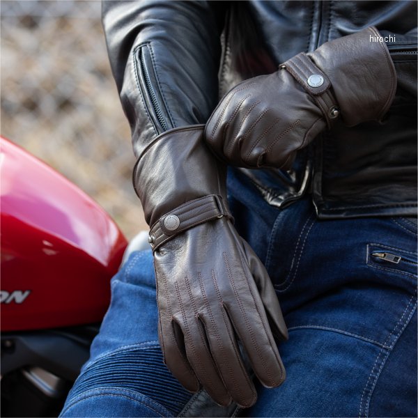 デグナー DEGNER レザーグローブカラー:ブラウン サイズ:XLサイズ素材:牛革手のひらはあて革で補強。手首部分はボタン式で着脱やサイズ調整が簡単にできる仕様。親指と人差指にタッチスクリーン対応素材を採用。手のひら側のインナーをなくしたことにより握りやすくなり操作性UP。【注意点】お使いの保護フィルムと相性が悪く、スマホタッチが反応しない場合がございます。経年変化やご使用による製品の劣化・損耗は避けられません。耐久性には十分考慮しておりますが、過度な負担をかけたり使用方法が適切でない場合破損する恐れがございます。同じ製品であってもそのシワやヒビの入り方にはそれぞれ個体差があり、またその革固有のキズ・色合いの濃淡など個性がございます。製作時期によっても革の風合い、色味に若干の差異が生じることが御座いますので予めご了承くださいませ。商品の仕様等予告なく変更する場合がございます。