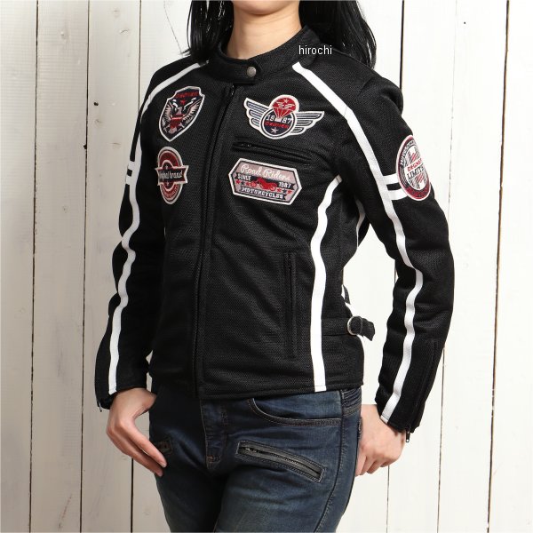 デグナー DEGNER レディースメッシュジャケットカラー:ブラック サイズ:Sサイズ素材:ポリエステル/牛革暑い季節に嬉しい軽い着心地で通気性抜群のフルメッシュジャケット。肩、肘、胸、背中にプロテクター標準装備。袖口はファスナー仕様でグローブに合わせて調節可能。裾のベルトでサイズ調節できバタつき防止に。アクションプリーツを配置することで肩回りが動かしやすくなりライディング時の負荷を軽減。【注意点】経年変化やご使用による製品の劣化・損耗は避けられません。耐久性には十分考慮しておりますが、過度な負担をかけたり 使用方法が適切でない場合破損する恐れがございます。薄い色の衣服と合わせて着用された時、雨・汗などでの湿り、摩擦などからの刺激で色移りすることがございますので、ご注意ください。商品の仕様等予告なく変更する場合がございます。