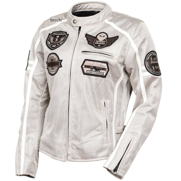 デグナー DEGNER レディースメッシュジャケットカラー:ベージュ サイズ:Sサイズ素材:ポリエステル/牛革暑い季節に嬉しい軽い着心地で通気性抜群のフルメッシュジャケット。肩、肘、胸、背中にプロテクター標準装備。袖口はファスナー仕様でグローブに合わせて調節可能。裾のベルトでサイズ調節できバタつき防止に。アクションプリーツを配置することで肩回りが動かしやすくなりライディング時の負荷を軽減。【注意点】経年変化やご使用による製品の劣化・損耗は避けられません。耐久性には十分考慮しておりますが、過度な負担をかけたり 使用方法が適切でない場合破損する恐れがございます。薄い色の衣服と合わせて着用された時、雨・汗などでの湿り、摩擦などからの刺激で色移りすることがございますので、ご注意ください。商品の仕様等予告なく変更する場合がございます。