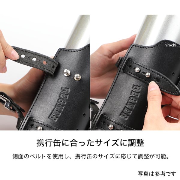 デグナー DEGNER ガソリン携行缶ホルダーカラー:ヴィンテージブラック 素材:牛革サイズ:高さ 20~28cm×内径7.5~9.4cm ※有効内寸付属品:結束バンド 2本、脱落防止ヒモ【注意点】携行缶は別売りです。経年変化やご使用による製品の劣化・損耗は避けられません。耐久性には十分考慮しておりますが、過度な負担をかけたり使用方法が適切でない場合破損する恐れがございます。同じ製品であってもそのシワやヒビの入り方にはそれぞれ個体差があり、またその革固有のキズ・色合いの濃淡なども個性がございます。製作時期によっても革の風合いに若干の差異が生じることが御座いますので、予めご了承くださいませ。商品の仕様等予告なく変更する場合がございます。