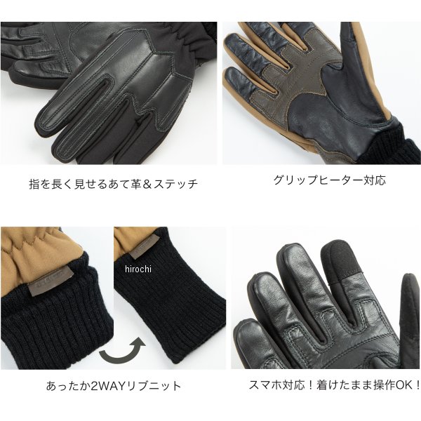 デグナー DEGNER ウィンターソフトシェルグローブサイズ:XLカラー:ブラック素材:ポリエステル(ソフトシェル)、牛革、透湿防水フィルム【仕様説明】人差し指、中指へ伸びるあて革とステッチのデザインが、ハンドル操作中の指先をすらりと長く見せる。手のひら側は、摩擦しやすい部分に革をあてて補強。裏地を薄くすることでグリップヒーターにも対応。裾元のリブは折り返しても伸ばしてもOK。冬の冷たい風から手首を守れる。親指、人差し指にタッチスクリーン対応素材を採用。※注意点・お使いの保護フィルムと相性が悪く、スマホタッチが反応しない場合がございます。・経年変化やご使用による製品の劣化・損耗は避けられません。・耐久性には十分考慮しておりますが、過度な負担をかけたり使用方法が適切でない場合破損する恐れがございます。・同じ製品であってもそのシワやヒビの入り方にはそれぞれ個体差があり、またその革固有のキズ・色合いの濃淡など個性がございます。・製作時期によっても革の風合いに若干の差異が生じることが御座いますので予めご了承くださいませ。・商品の仕様、価格等(消費税改定などにより)予告なく変更する場合がございます。