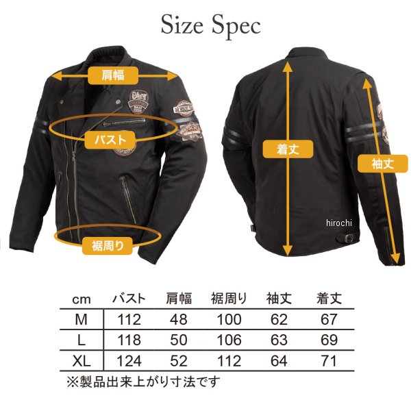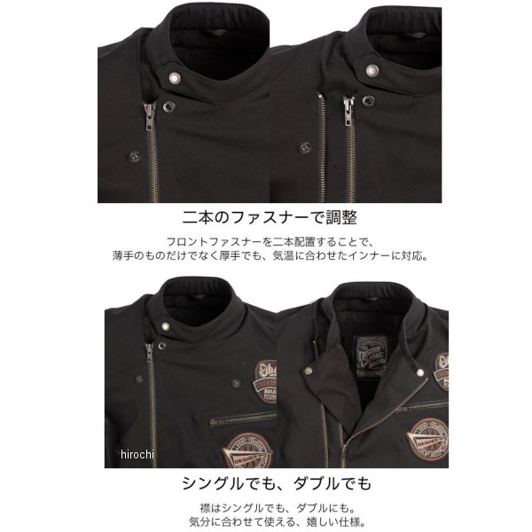 デグナー DEGNER 防風テキスタイルジャケットサイズ:XLカラー:ブラック素材:ポリエステル/ポリウレタン/牛革標準装備プロテクター:肩、肘、背、胸【仕様説明】襟はシングルでもダブルにもなり、気分に合わせて使える仕様。フロントファスナーを2本配置することで、薄手の物だけでなく厚手でも、気温に合わせたインナーに対応。プロテクターは着脱式。街着としても違和感なく着られます。外側の素材は風を通さない防風生地、裏地には保温性の高いフリースを使用することで冷たい風の侵入を防ぎ、しっかり保温。袖口はファスナー仕様。グローブに合わせて調整可能。ファスナー全開にすれば、着脱もスムーズです。背中にはアクションプリーツを配置。ライディングポジションでも動きやすいよう配置。※取付け、ご使用時の注意点・製作時期によって風合いに若干の差異が生じることがございます。予めご了承ください。・経年変化やご使用による製品の劣化、損耗は避けられません。・耐久性には十分考慮しておりますが、過度な負担をかけたり 使用方法が適切でない場合破損する恐れがございます。・薄い色の衣服と合わせて着用された時、雨・汗などでの湿り、摩擦などからの刺激で色移りすることがございますので、ご注意ください。・商品の仕様等予告なく変更する場合がございます。