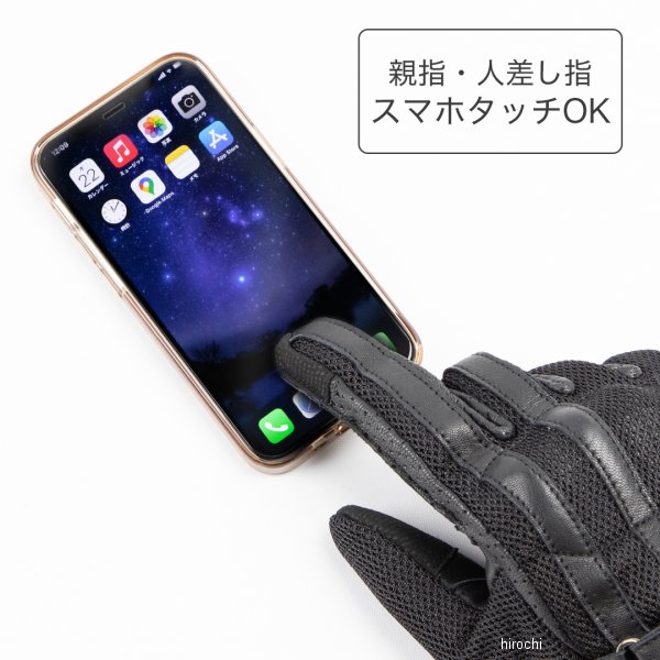 デグナー DEGNER 春夏モデル テキスタイルメッシュグローブ レディースサイズ:Sカラー:ブラック/グレー素材:ポリエステル、牛革夏用ジャケットにも使用しているテキスタイルメッシュ生地を使用したグローブ。プロテクター装備。【ご使用時の注意点】お使いの保護フィルムと相性が悪く、スマホタッチが反応しない場合がございます。同じ製品であってもそのシワやヒビの入り方にはそれぞれ個体差があり、またその革固有のキズ・色合いの濃淡なども個性がございます。製作時期によっても革の風合いに若干の差異が生じることがございます。予めご了承ください。経年変化やご使用による製品の劣化・損耗は避けられません。耐久性には十分考慮しておりますが、過度な負担をかけたり 使用方法が適切でない場合破損する恐れがございます。薄い色の衣服と合わせて着用された時、雨・汗などでの湿り、摩擦などからの刺激で色移りすることがございますので、ご注意ください。