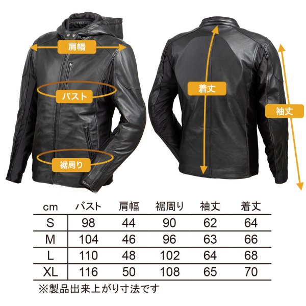 デグナー DEGNER 春夏モデル フード付きレザージャケットサイズ:XLカラー:ブラック素材:羊革、ジャージ素材肩・ひじ・背中・胸にはプロテクターを標準装備。フードがあることで、カジュアルなパーカースタイルとしてレザーに対する敷居の高さを払拭。取り外し可能で、シングルライダースとしても◎サイドにストレッチ素材を使用し、ライディングポジション時の負荷を軽減。長距離での走行を少しでも疲れにくく。【本革の特徴について】デグナーのレザーウェアは、完全な天然皮革を使用しております。天然皮革であるために、素材の表面に細かい傷・班・血栓等による色ムラが見られる事があります。これらは天然素材である証であり、皮革製品ならではの特長です。上記の点を素材の特徴としてご理解下さい。永くご愛用して頂く為に定期的なお手入れをお勧めいたします。皮革の染色には特に注意しておりますが、現在の染色技術では完全に色落ちしない染色は完成しておりません。汗・水・摩擦日光等で色落ち・色移り・変色する場合がございますので、ご着用時はご注意ください。